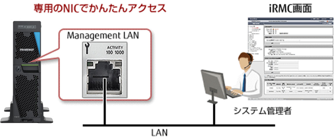 • iRMC専用LANポートで接続